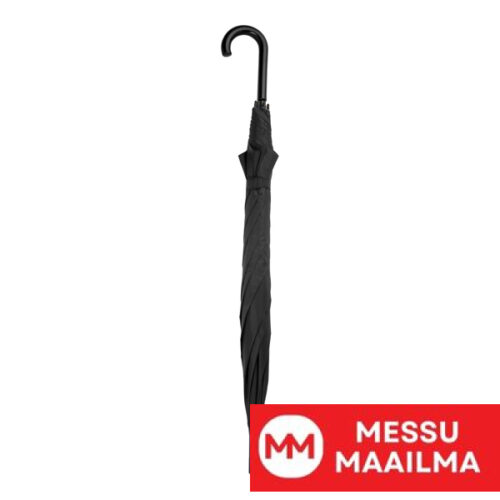 Sateenvarjo yhteensopivalla kankaalla ja kahvalla. Mustat reunat ja kärjet. Tarranauhakiinnitys ja automaattinen avaus. Halkaisija 105 cm.