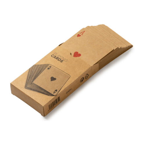 Ranskalainen korttipakka kierrätetystä pahvista. Mukana 54 korttia. Pakkaus ekologisesti muotoillussa rasiassa.