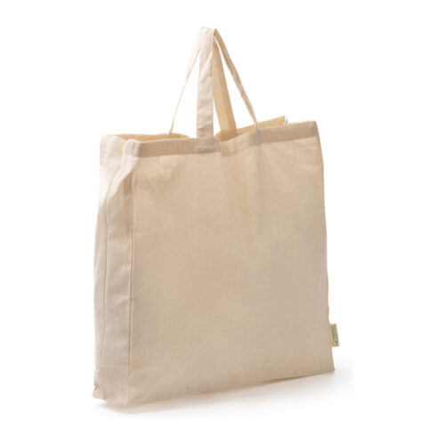 100 % luomupuuvillasta valmistettu kassi, jossa on vahvikkeet ja lyhyet, 35 cm pitkät kahvat. 120 g/m².