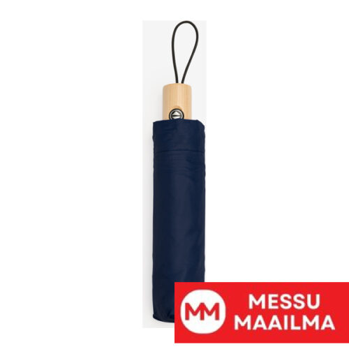 Automaattisesti avautuva ja sulkeutuva sateenvarjo 190T pongee-kankaasta ja yhteensopivalla pussilla. Mustat lasikuituiset harjat ja kärjet sekä puinen kahva. Tarranauhakiinnitys. Täydellinen tuulenpitävä sateenvarjo myrskyisiin päiviin.