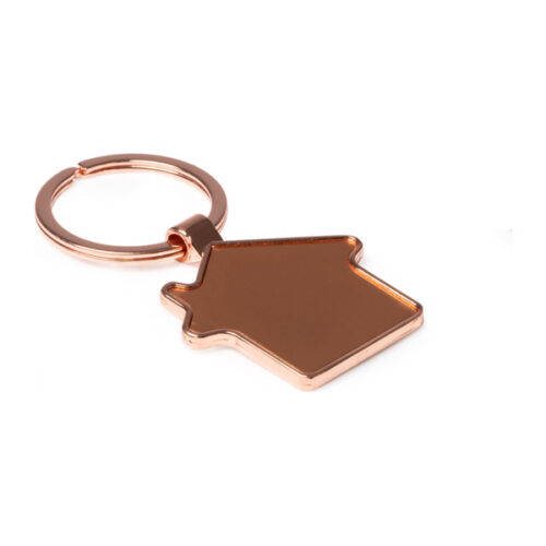 Metallinen avaimenperä talon muodossa kuparipinnoitteella.