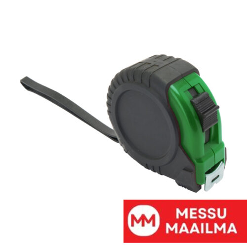 Hyväksytty 3 metrin fleksometri, jossa lukitusmekanismi ja metallinen koukku. Runko kuminväristä, metallinen klipsi ja kantohihna.