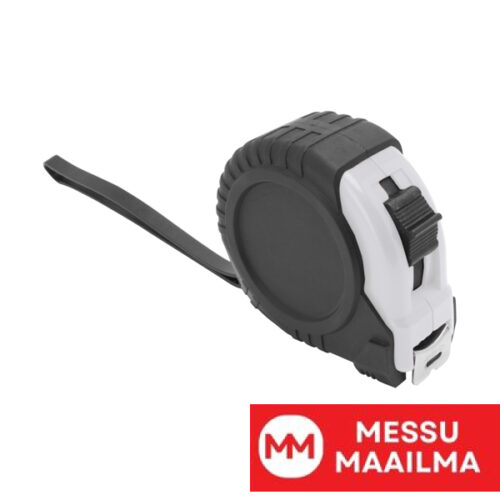 Hyväksytty 3 metrin fleksometri, jossa lukitusmekanismi ja metallinen koukku. Runko kuminväristä, metallinen klipsi ja kantohihna.