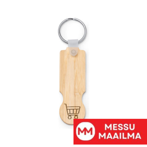 Bambuinen kolikkoavaimenperä, joka sopii erinomaisesti ostoskärryihin.