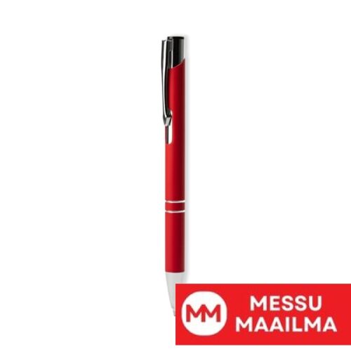 Kuulakärkikynä, jossa pehmeäpintainen metallirunko ja anodisoitu painike. Kärki, klipsi ja yksityiskohdat kromattua metallia. Jumbo-täyttöpakkaus mustalla musteella.