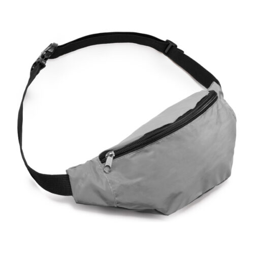 Heijastava vyötärölaukku, jossa on suuri etutasku polyesteristä.