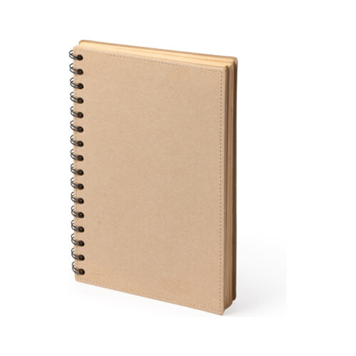 A5-kokoinen muistikirja kierrätyspahvista, jossa on kaksinkertainen spiraalirengas. FSC-kierrätyspaperista valmistettuja arkkeja. 60 viivoitettua arkkia.