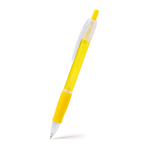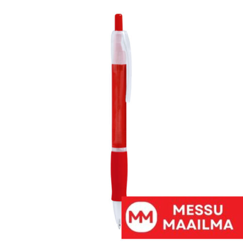 Läpikuultava kuulakärkikynä pehmeällä otteella. Sininen muste.