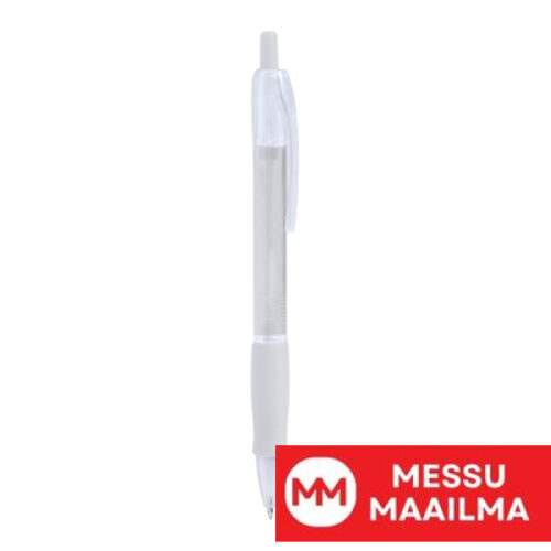 Läpikuultava kuulakärkikynä pehmeällä otteella. Sininen muste.
