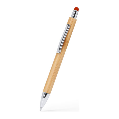 Eco-line-kuulakärkikynä, jossa bamburunko, värillinen osoitin ja metallinen klipsi. Hopeinen painike, klipsi ja kärki. 1,0 mm kirkas jumbo-täyttöpakkaus sinisellä musteella.
