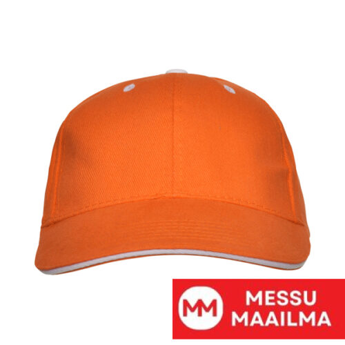 6-paneelinen lippis. 100 % puuvillaa. Kontrastivärinen sandwich-kangas. 6 tuuletusaukkoa ja säädettävä tarranauhakiinnitys. Irrotettava merkki.