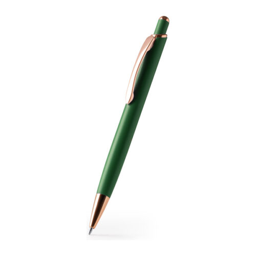 Painonappikuulakärkikynä, jossa mattapintainen metallirakenne ja kupariviimeistelyt. Jumbo-täyttöpakkaus sinisellä musteella.