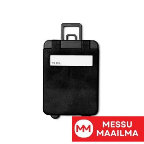 Matkalaukun nimilappu matkalaukun muotoon. Sisäkortti ja hihna sisältyvät hintaan. Muotoilumme ansiosta löydät matkalaukkusi nopeammin liukuhihnalta.