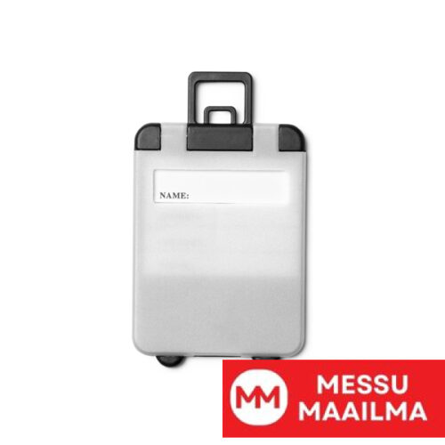Matkalaukun nimilappu matkalaukun muotoon. Sisäkortti ja hihna sisältyvät hintaan. Muotoilumme ansiosta löydät matkalaukkusi nopeammin liukuhihnalta.