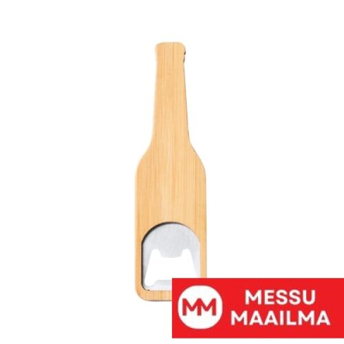 Pullonmuotoinen avaaja, valmistettu bambusta ja metallista ja varustettu magneetilla.