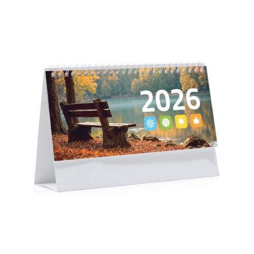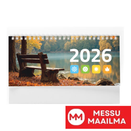 Vaakasuora spiraalimainen rengaspöytäkalenteri. Asettelu: kuluvan kuukauden / edellisen kuukauden / seuraavan kuukauden / vuosikalenteri. Pyhienpäivät mukana. Pahvista valmistettu jalusta sopii erinomaisesti tulostukseen. Tarkista vuoden 2026 kalenterin hinta myyntiedustajaltasi.