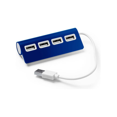USB-portti, jossa alumiinirunko, kaksivärinen viimeistely ja valkoinen johto. Sisältää 4 USB-porttia.