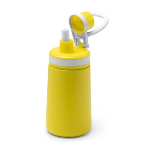 Kaksinkertainen ruostumattomasta teräksestä valmistettu pullo, jossa pilli ja turvakorkki. Kantokahva. Liukumaton pohja. Tilavuus: 350 ml. Pakkaus design-rasiassa.