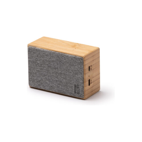 Langaton kaiutin, jonka runko on bambua ja RPET-polyesteriä. 3 W:n teho. C-tyypin kaapeli sisältyy hintaan. Pakattu ekologiseen laatikkoon.