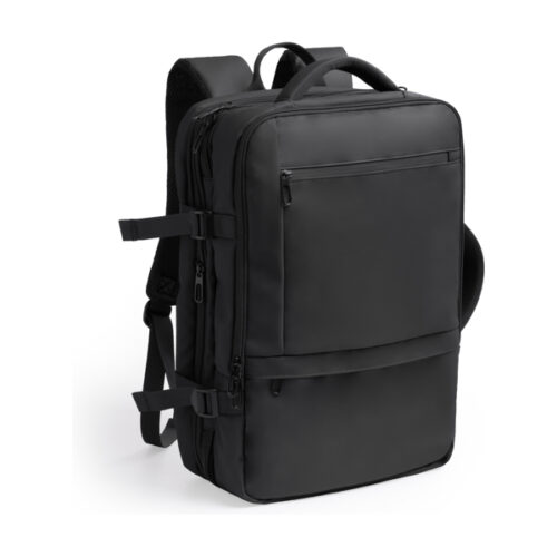Jatkettava, tilava matkareppu PU-nahasta. Pehmustettu selkäosa ja kahvat. Ulkoinen etutasku vetoketjulla. Päälokero, jossa 17 tuuman pehmustettu sisätasku. Varkaudenestotasku vasemmassa kahvassa ja selkänojassa. Vetohihna kärryille. Tilavuus: 40 l.