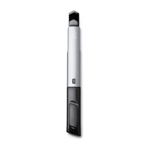 Leikkuri, jossa on ruostumattomasta teräksestä valmistettu terä ja kierrätetystä alumiinista valmistettu runko. Irrotettava suojus leikkaamista ja terän säätöä varten. Toimitetaan ekologisessa laatikossa.