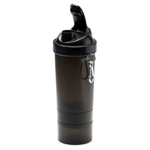 PP-sekoitin, jossa 304-ruostumattomasta teräksestä valmistettu sekoitin. PP-annostelija, jossa lokeroita ravintolisille. Tilavuus: 600 ml. Sisältää karbiinin. Toimitetaan design-laatikossa.