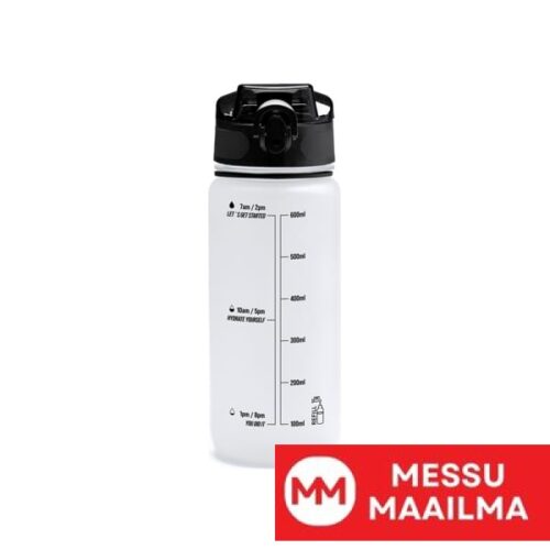 Läpikuultava tritan-pullo, korkki juomanokalla ja yhteensopivalla kantokahvalla. Motivoiva aikamerkintä ja tilavuuden ilmaisin. Tilavuus: 750 ml. Pakkaus design-rasiassa.