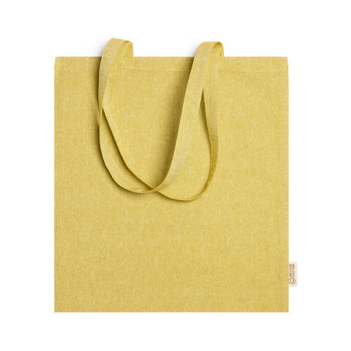 100 % kierrätetystä puuvillasta valmistettu kassi, jossa meleerattu pinta ja 70 cm pitkät kahvat. 120 g/m².
