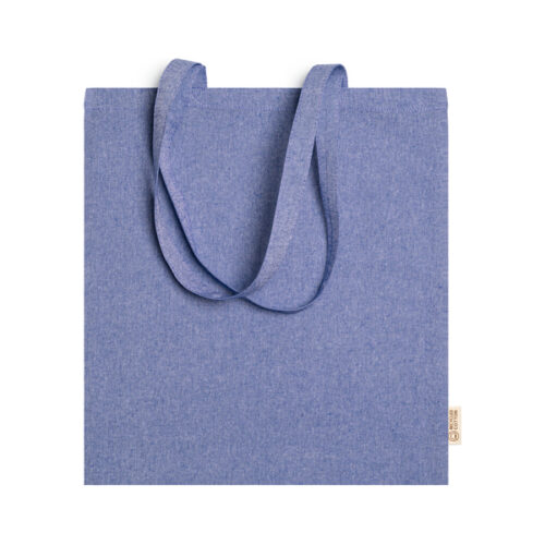 100 % kierrätetystä puuvillasta valmistettu kassi, jossa meleerattu pinta ja 70 cm pitkät kahvat. 120 g/m².