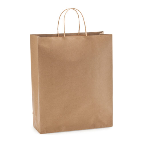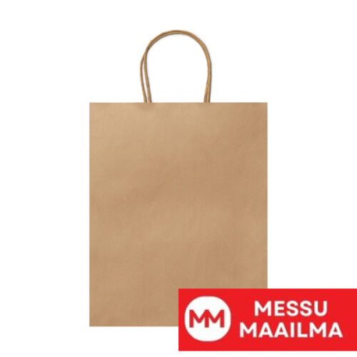 110 g/m² paperikassi luonnonvärisenä, vahvistetuilla lyhyillä kierretyillä kahvoilla.