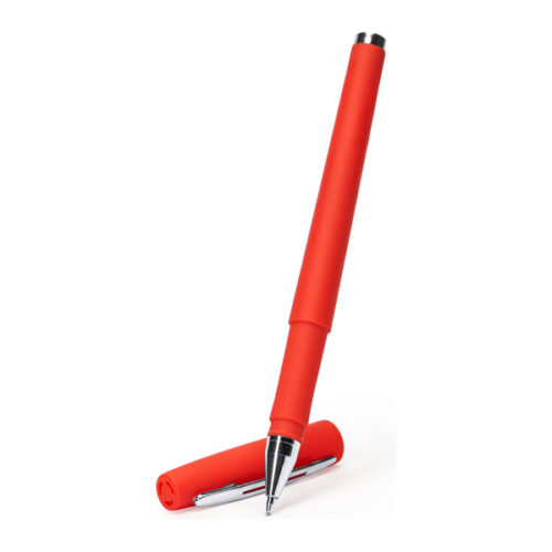Kuulakärkikynä, jossa metallinen klipsi ja kärki. Kirkkaanvärinen runko ja pehmeä kumipinta. 0,7 mm. Jumbo-täyttö sinisellä musteella.