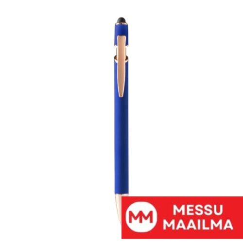 Pehmeäpintainen metallinen kuulakärkikynä ruusukullanvärisillä yksityiskohdilla. Sininen jumbo-täyttöpakkaus. Ihanteellinen lasertulostukseen.