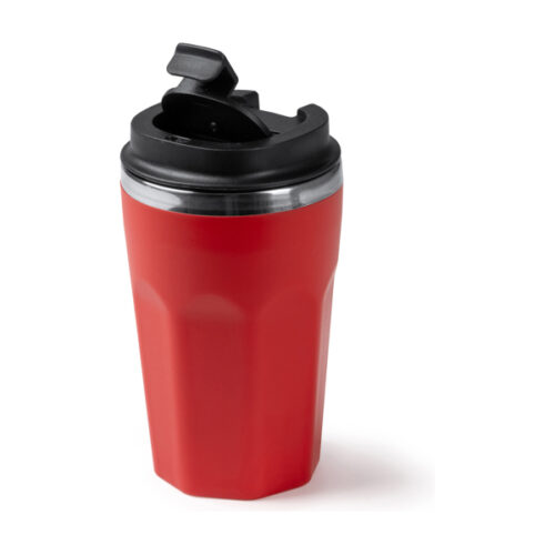 Kaksiseinäinen kuppi. Sisäpuoli 304 ruostumatonta terästä, ulkopinta kierrätettyä polypropeenia. Viistetty muotoilu. Tilavuus: 400 ml. Pakkaus design-rasiassa.