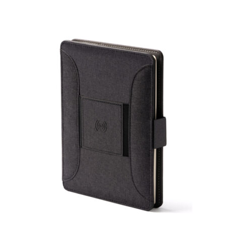 RPET 300D -monitoiminen A5-kansio on monipuolinen ja käytännöllinen lisävaruste, jonka avulla voit järjestää asiakirjasi. Tämä korkealaatuisesta kierrätysmateriaalista, RPET:stä, valmistettu kansio osoittaa sitoutumisesi ympäristönsuojeluun. Magneettisen sulkimen ansiosta kansio varmistaa, että asiakirjasi ja tavarasi pysyvät turvassa kansion sisällä. Lisäksi kanteen on sisäänrakennettu langaton laturi, jonka avulla voit kätevästi ladata langattoman latauksen kanssa yhteensopivia laitteitasi. Kansion sisältä löydät irrotettavan muistivihkon, jossa on 56 sivua, ja lokeron matkapuhelimellesi, jossa voit pitää sitä käden ulottuvilla ja suojattuna. Siinä on myös korttitasku ja matkapuhelintasku. Kansiossa on myös kätevä kynäteline, joten sinulla on se aina käden ulottuvilla tarvittaessa. Lisäksi mukana tulee kaapeli, jossa on kolme tuloa (tyyppi C ja USB-lähtö), jonka avulla voit ladata erilaisia laitteita ja varmistaa yhteensopivuuden erilaisten elektronisten laitteiden kanssa.