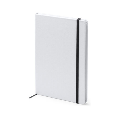 A5-kokoinen muistikirja, ihanteellinen sublimaatioon. Sivutussi ja sopiva kuminauha kiinnittämistä varten. 100 sileää arkkia.