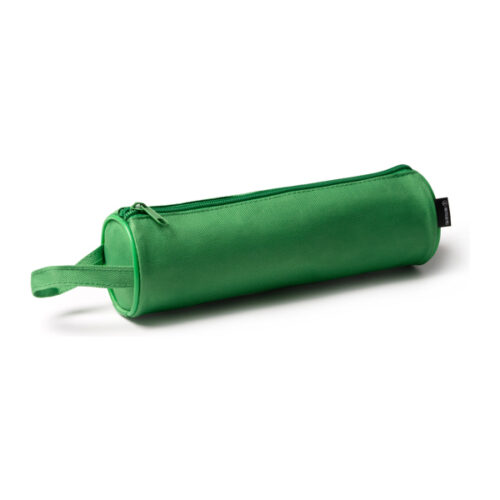 Sylinterimäinen kotelo 600D RPET-polyesteriä yksivärisissä väreissä ja yhteensopivalla vetoketjulla.