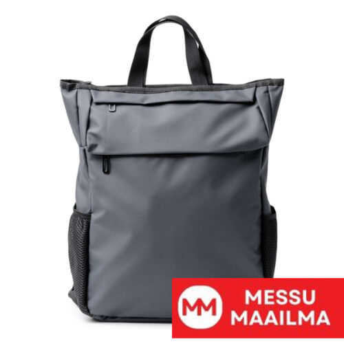 Vetoketjullinen PU-nahkareppu. Leveä sisätasku, jossa irrotettava tasku 15″ kannettavalle tietokoneelle. Ulkoläpässä kaksinkertainen vetoketjullinen tasku ja kaksi verkkotaskua sivuilla. Pehmustetut kahvat ja selkäosa. Tilavuus: 20 litraa.