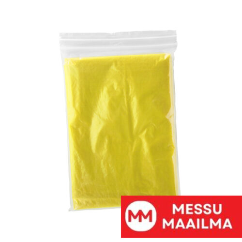 Yhden koon läpinäkyvä sadeviitta aikuisille, jossa huppu ja käsivarsiaukot.