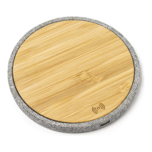 Langaton laturi, jonka runko on bambua ja RPET-kangasta, yhteensopiva langattomien laitteiden kanssa. 10 W:n lähtöteho. C-tyypin liitäntä. Kaapeli sisältyy hintaan. Pakattu ekologiseen rasiaan.