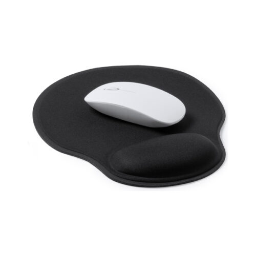 Pehmeästä polyesteristä valmistettu hiirimatto, jossa pehmustettu rannetuki. Liukumaton kumipohja. Maton muotoilu antaa sinun lepuuttaa ranteitasi työskennellessäsi.