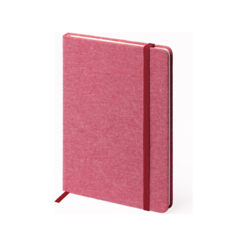 A5-kokoinen muistivihko puuvillakansilla. Sivutussi ja kuminauha. 100 sileää arkkia.