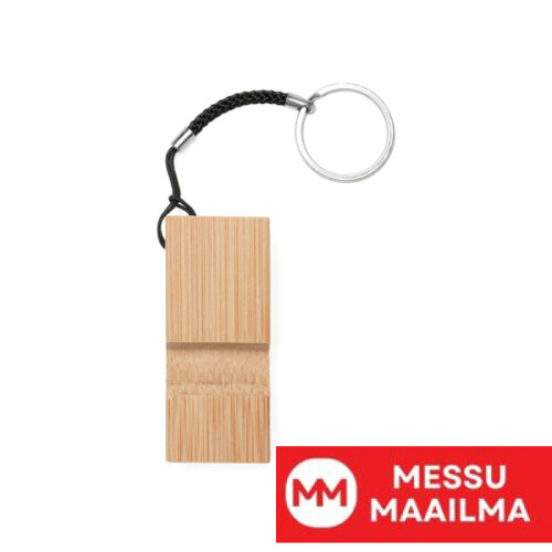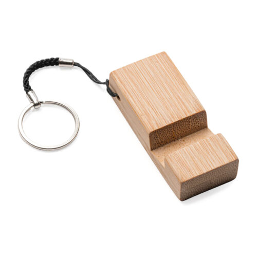 Bambusta valmistettu avaimenperä, jossa on liikuteltava teline.