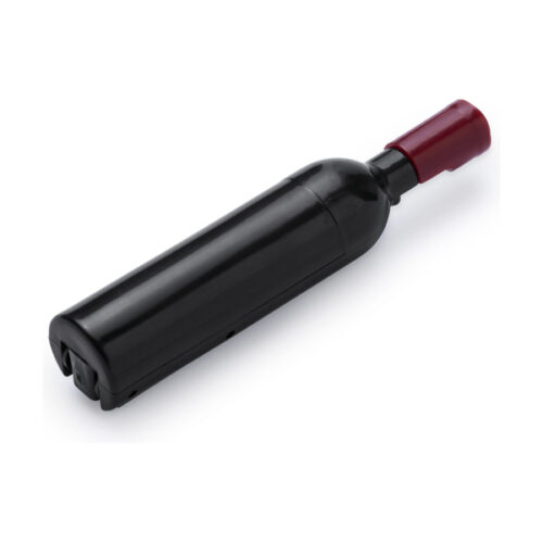 Metallinen korkkiruuvi pullon muodossa.