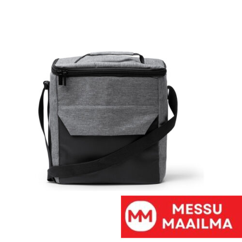 Jäähdytin PU-nahasta ja 300D RPET -materiaalista, isoterminen sisäpuoli. Suuri päälokero ja ulkotasku vetoketjulla. Vahvistettu kahva ja säädettävä kantohihna.
