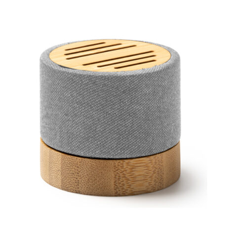 Langaton kaiutin, jossa bamburunko ja RPET-design-kangas. 3 W:n teho ja ladattava akku. C-tyypin liitäntä. Kaapeli sisältyy pakkaukseen. Kaiutin on valmistettu ympäristöystävällisistä materiaaleista saastepäästöjen vähentämiseksi.
