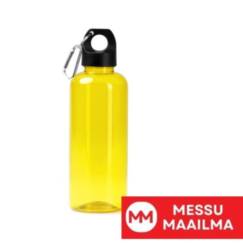 Pullo, jossa RPET-runko. Korkki ja kantokahva karbiinihaalla. Tilavuus: 580 ml.