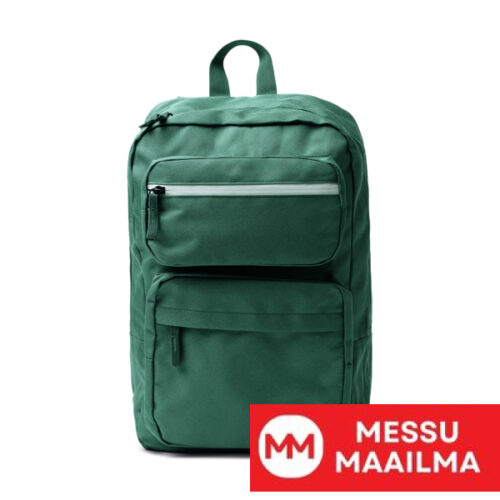 Reppu 600D RPET -materiaalista. Kaksi etutaskua, sisäosasto, jossa pehmustettu tasku 15″ kannettavalle tietokoneelle. Yläosassa etutasku, jossa heijastinnauha ja vedenpitävä vetoketju. Pehmustetut kahvat ja selkäosa.