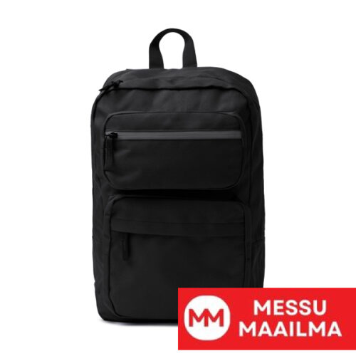 Reppu 600D RPET -materiaalista. Kaksi etutaskua, sisäosasto, jossa pehmustettu tasku 15″ kannettavalle tietokoneelle. Yläosassa etutasku, jossa heijastinnauha ja vedenpitävä vetoketju. Pehmustetut kahvat ja selkäosa.