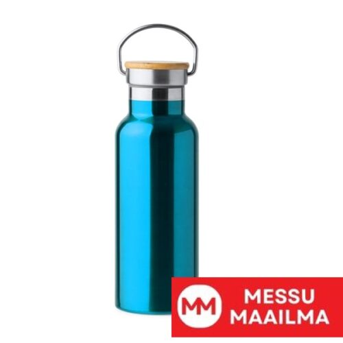 304 ruostumattomasta teräksestä valmistettu kaksoisseinäinen pullo, jossa bambukorkki. Tilavuus 500 ml. Sublimaatiomahdollisuus valkoiseen väriin. Taittuva metallinen kahva. Saatavilla useissa eri väreissä. Valkoinen väri soveltuu sublimoitavaksi.