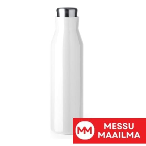 Ruostumattomasta teräksestä valmistettu 304-tuumainen termospullo, jossa on kaksinkertainen seinämä. Tilavuus 600 ml. Valkoinen, sopii sublimointiin.